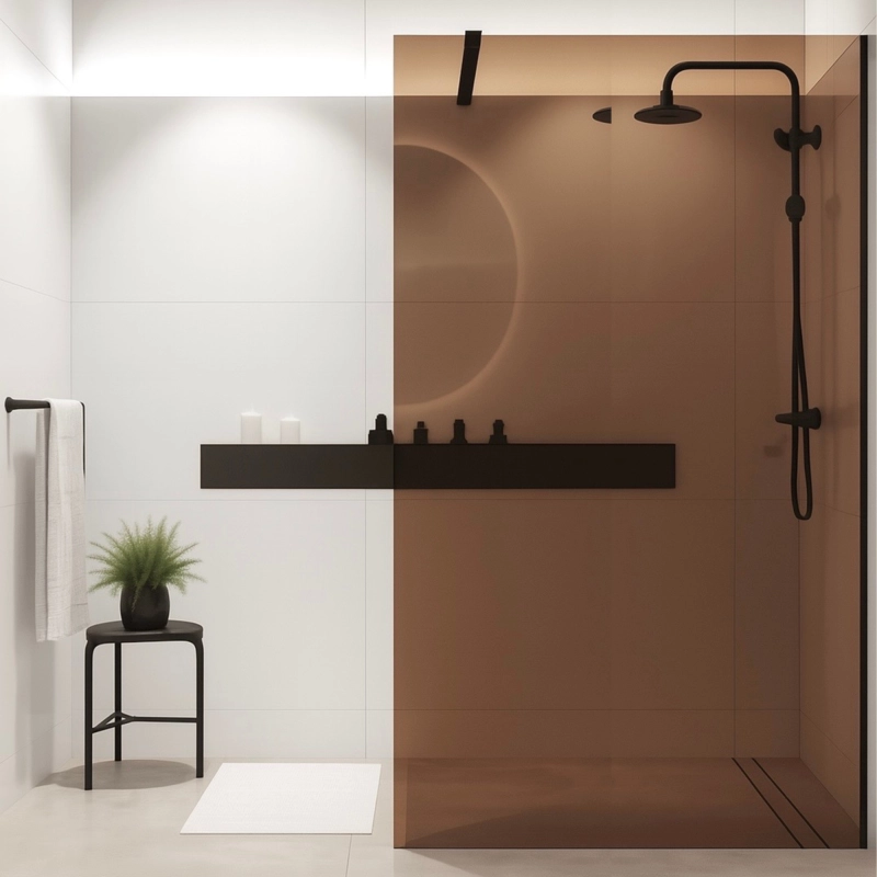Ścianka prysznicowa w pięknym, brązowym odcieniu wprowadzi do łazienki niepowtarzalny akcent, obok którego nie da się przejść obojętnie. Zaokrąglone brzegi w górnej części nadają eleganckiego charakteru.