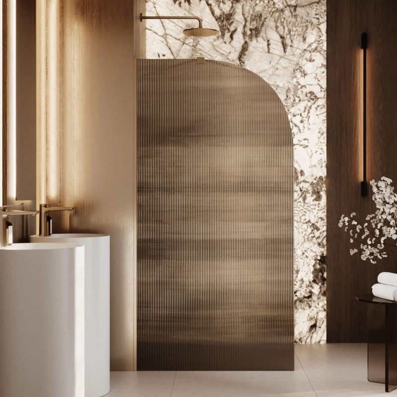 copy of Ścianka prysznicowa WALK IN FIX brązowa półokrągła ryflowana 8mm WELLE Brown Oval MASSI | Różne rozmiary