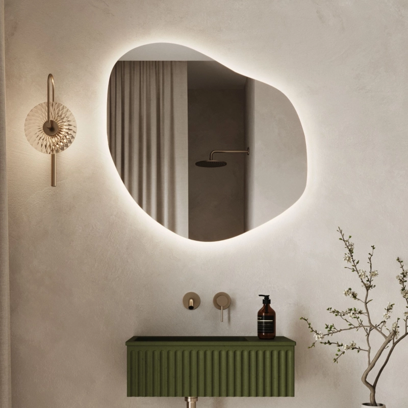 copy of Lustro o nieregularnym kształcie oszlifowane podświetlane 70 x 56 cm MERINGO LED