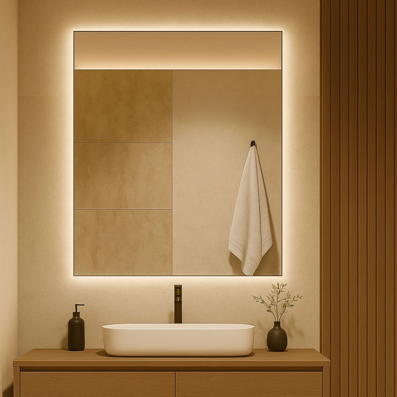 Lustro TAVA LED to kwintesencja minimalizmu i elegancji. Szlifowana tafla szkła bez żadnej ramy z subtelnym podświetleniem będzie stanowić wspaniałe dopełnienie każdej łazienki. Ponadczasowy, prostokątny kształt sprawdzi się zarówno w nowoczesnych, minimalistycznych aranżacjach jak we wnętrzach w stylu japandi, loftowych czy skandynawskim.