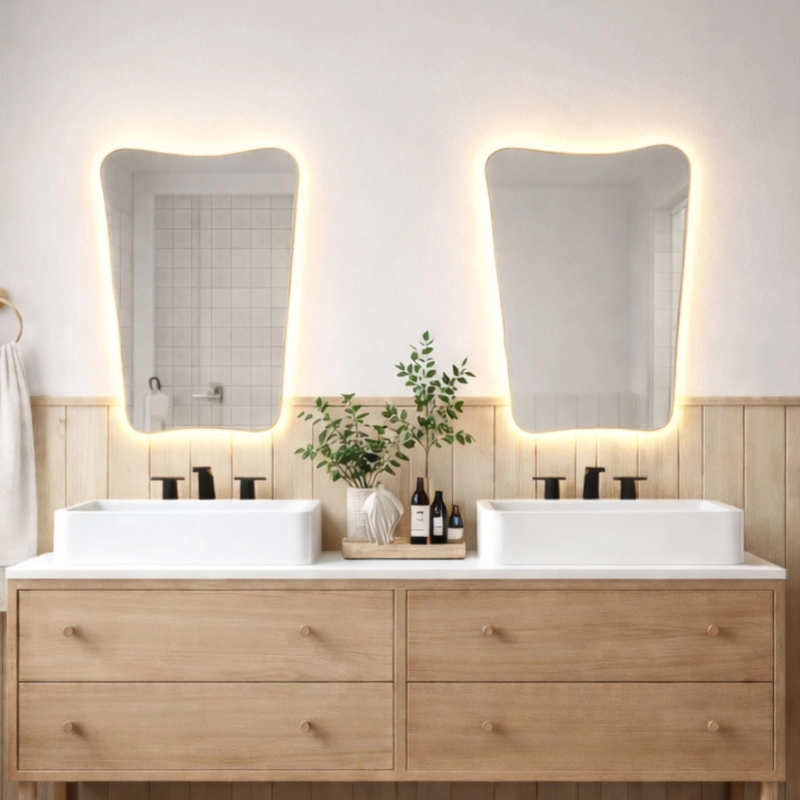 copy of Lustro o nieregularnym kształcie oszlifowane podświetlane 70 x 56 cm MERINGO LED