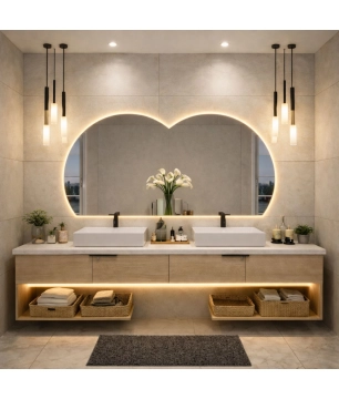 Eleganckie lustro VALO SLIM LED, z subtelnym podświetleniem stanie się ozdobą niejednego pomieszczenia. Prosta forma wykończona delikatną metalową ramą oraz rozporoszone światło sprawdzi się nie tylko w łazience. Lustro LED nadaje wnętrzu przytulności, dzięki braku konieczności instalowania dodatkowego oświetlenia pozwala na zachowanie we wnętrzu minimalistycznego, eleganckiego stylu. VALO SLIM LED będzie idealnym dopełnieniem między innymi łazienki w stylu nowoczesnym, japandi, loftowym czy skandynawskim.