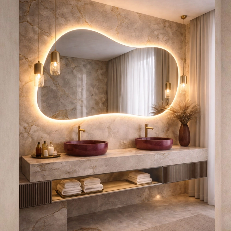 copy of Lustro o nieregularnym kształcie oszlifowane podświetlane 70 x 56 cm MERINGO LED