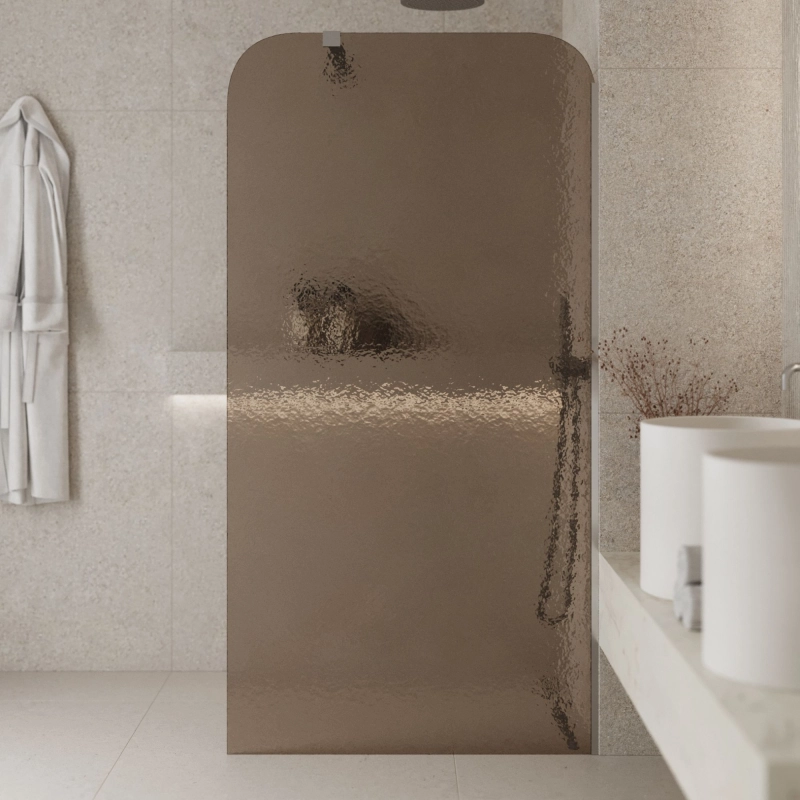 Ścianka prysznicowa w pięknym, brązowym odcieniu wprowadzi do łazienki niepowtarzalny akcent, obok którego nie da się przejść obojętnie. Zaokrąglone brzegi w górnej części nadają eleganckiego charakteru.
