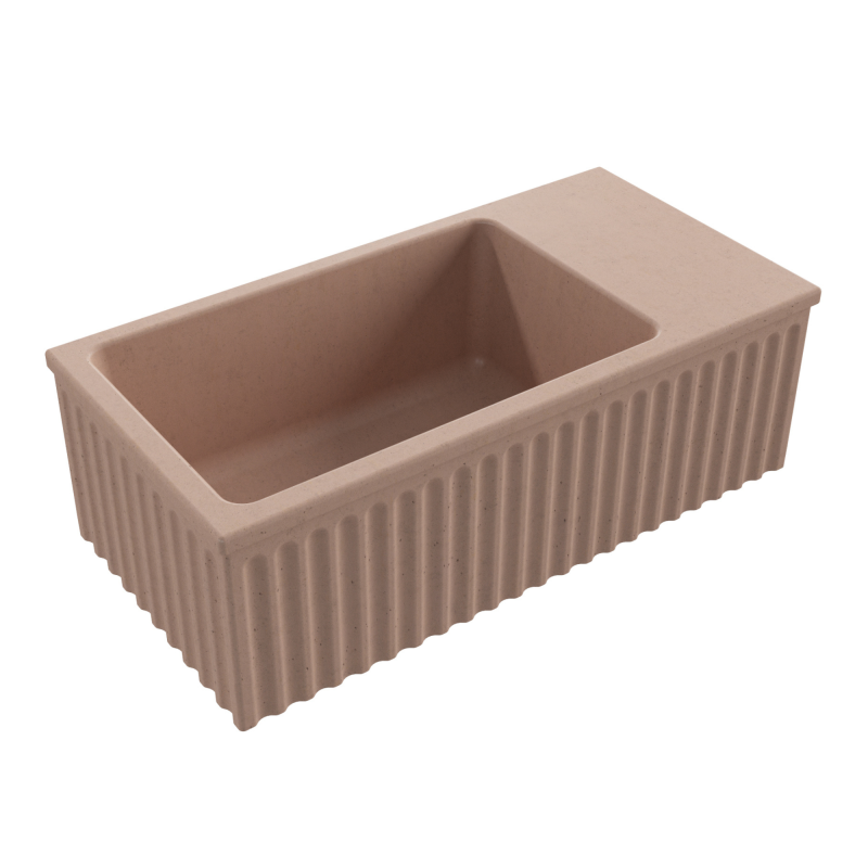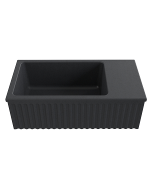 Discover the WELLE washbasin, crafted from the highest quality concrete. Its unique grooved surface adds modernity and elegance to any bathroom. Available in 17 different colors and both wall-mounted and countertop options.