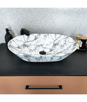 Przepięknie prezentująca się umywalka imitująca marmur o ponadczasowym, prostokątnym kształcie. MARBE to umywalka do montażu na szafce bądź na blacie. Została wykonana z najwyższej klasy ceramiki sanitarnej z wykorzystaniem najnowszych technologii EASY CLEAN umożliwiającej łatwe dbanie o czystość. Wspaniały matowy czarny kolor i ponadczasowa linia niewątpliwie nadaje szyku i elegancji tej umywalce a jej optymalny rozmiar czyni ją bardzo komfortową i funkcjonalną. Umywalka ta wspaniale wkomponuje się w każdy styli.