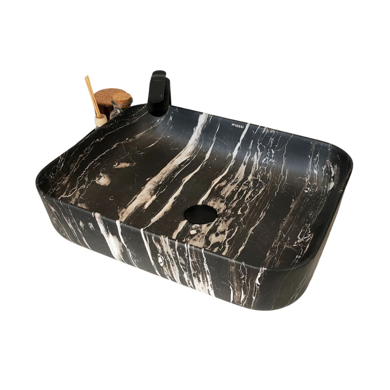 Umywalka nablatowa prostokątna 50 x 39 cm MARBE BLACK MASSI