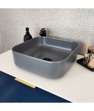 Umywalka nablatowa kwadratowa 39 cm ceramiczna kawowa ALIZMA MASSI