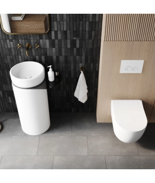 copy of Umywalka z konglomeratu wolnostojąca okrągła biała błyszcząca 87 x 38 cm RONA GLOW bez przelewu