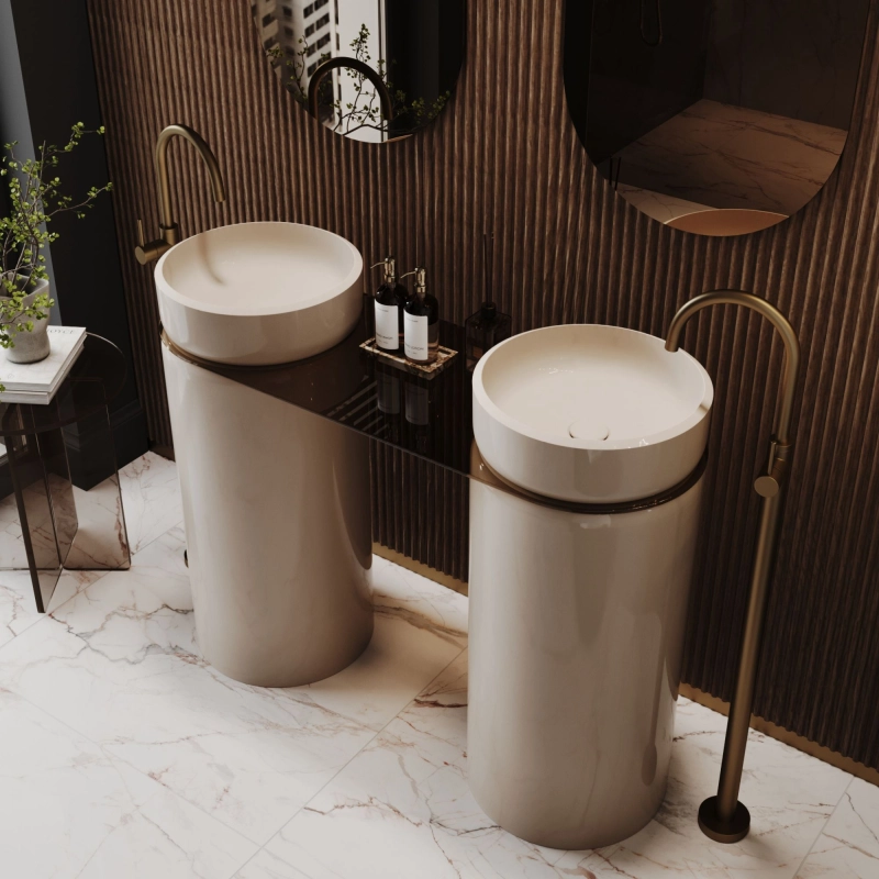 copy of Umywalka z konglomeratu wolnostojąca okrągła biała błyszcząca 87 x 38 cm RONA GLOW bez przelewu
