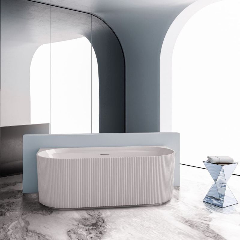Nowoczesna, elegancka wolnostojąca wanna przyścienna z wyjątkową, ryflowaną fakturą.