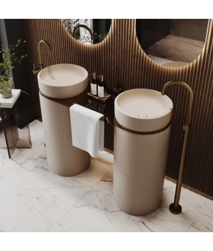 Umywalka z konglomeratu wolnostojąca okrągła beżowa matowa 87 x 44 cm KALMI BEIGE MATT z otworem na baterię