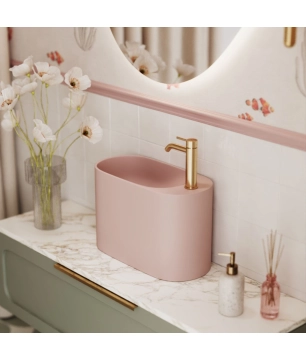 Umywalka z kamienia syntetycznego nablatowa / wisząca prostokątna różowa 43 cm x 25 cm EVELIA Pink