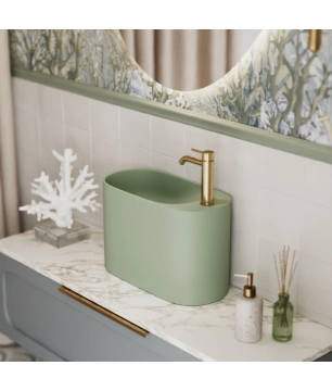 Umywalka z kamienia syntetycznego nablatowa / wisząca prostokątna zielona 43 cm x 25 cm EVELIA Green