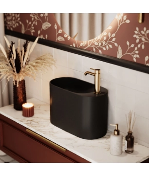 Umywalka z kamienia syntetycznego nablatowa / wisząca owalna czarna 45 x 22 cm OVELA Black