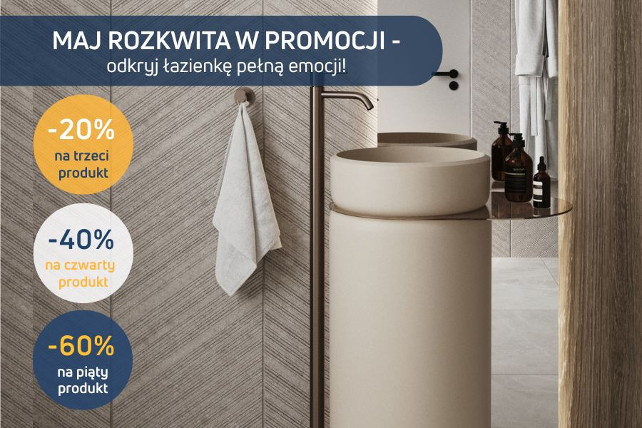 Promocja „Maj rozkwita w promocji – odkryj łazienkę pełną emocji!” obowiązuje od 1 do 22 maja 2025 r. lub do wyczerpania zapasów. Nie zwlekaj – najpiękniejsze rzeczy znikają jako pierwsze!