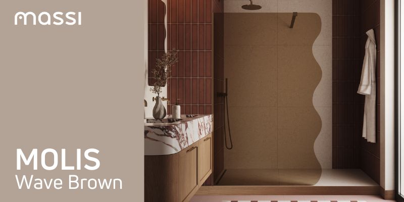 Ścianka prysznicowa WALK IN FIX WAVE Brown MASSI - Subtelna fala, która odmienia Twoją łazienkę