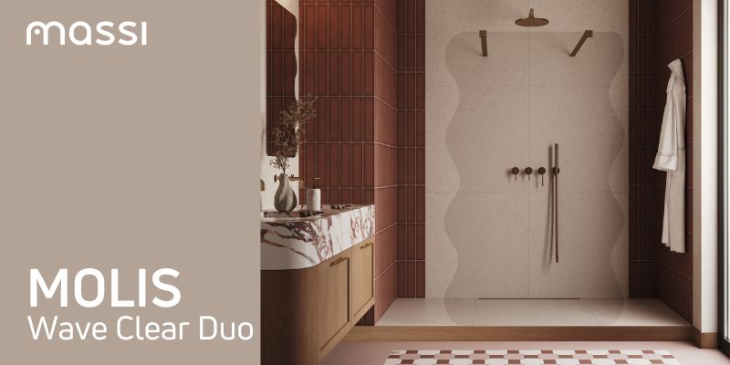Ścianka prysznicowa Walk in szkło transparentne falowane 8mm MOLIS Wave Duo Clear MASSI | Różne rozmiary