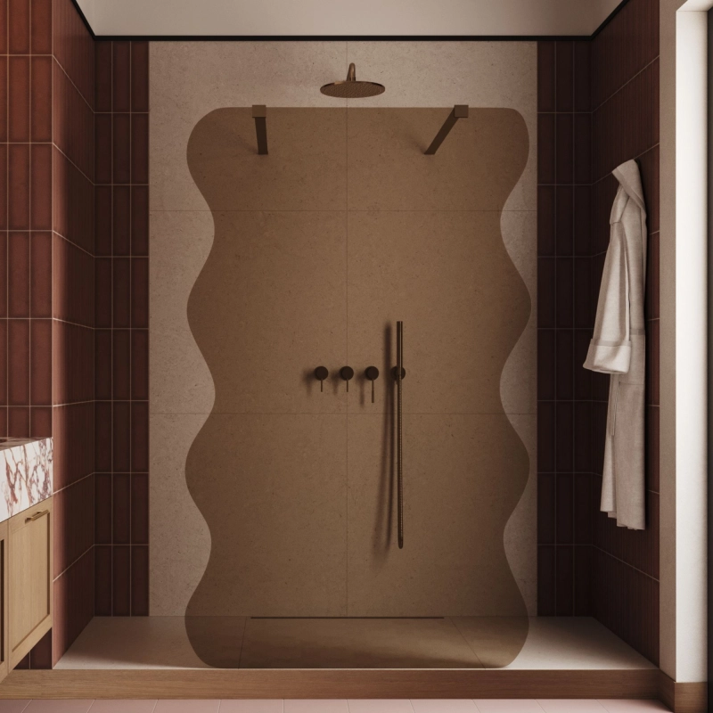 Ścianka prysznicowa Walk in szkło brązowe falowane 8mm MOLIS Wave Duo Brown MASSI | Różne rozmiary