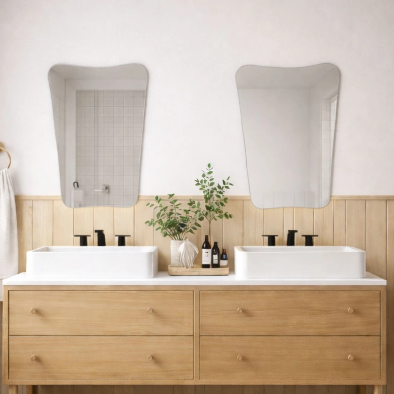 Lustro LOONA to doskonały wybór dla Ciebie, jeśli szukasz subtelnego akcentu, który wprowadzi do wnętrza harmonię, spokój i nowoczesną estetykę. Jego nieregularna, miękko zaokrąglona forma inspirowana prostokątem nadaje przestrzeni lekkości i naturalnego charakteru, idealnie wpisując się w aranżacje japandi, skandynawskie oraz nowoczesne. Brak podświetlenia LED podkreśla czystość formy i pozwala w pełni wybrzmieć kształtowi lustra. Dzięki temu LOONA staje się uniwersalnym elementem wystroju, który subtelnie dopełnia wnętrze, nie dominując go nadmiarem detali. Bezramowa konstrukcja oraz precyzyjnie oszlifowane krawędzie świadczą o wysokiej jakości wykonania i nadają całości elegancki, minimalistyczny charakter.