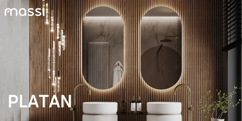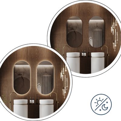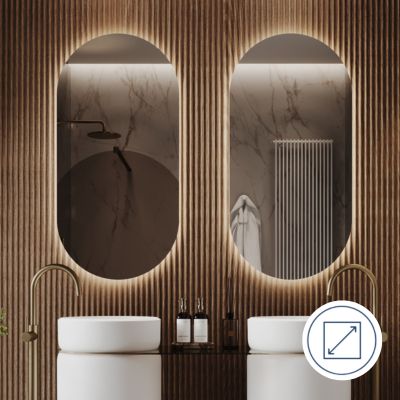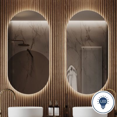 Lustro owalne podświetlane symetryczne bezramowe PLATAN LED | Różne rozmiary | Różne kolory szkła
