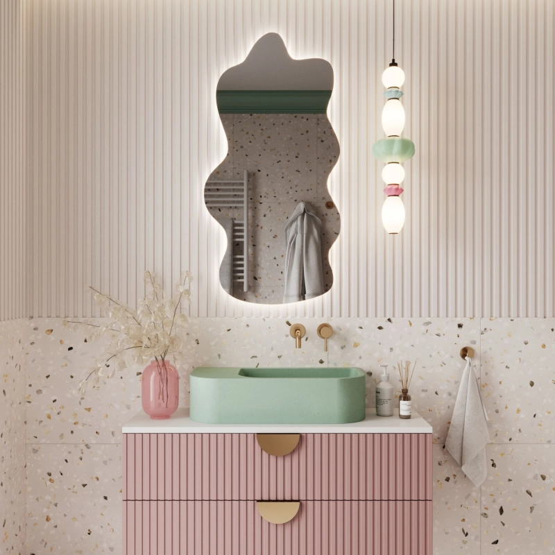 Lustro CLOUD zachwyca swoim unikalnym, inspirowanym naturą kształtem – subtelna, organiczna linia przypomina puszysty obłok, wprowadzając do wnętrza lekkość i odrobinę bajkowej elegancji. W wersji z delikatnym podświetleniem LED jego forma zyskuje nowy wymiar – miękkie, równomierne światło otula lustro, tworząc nastrojowy efekt idealny na wieczór. Używamy wyłącznie wysokiej jakości taśm LED, które gwarantują trwałość, energooszczędność i przyjemne dla oka światło.