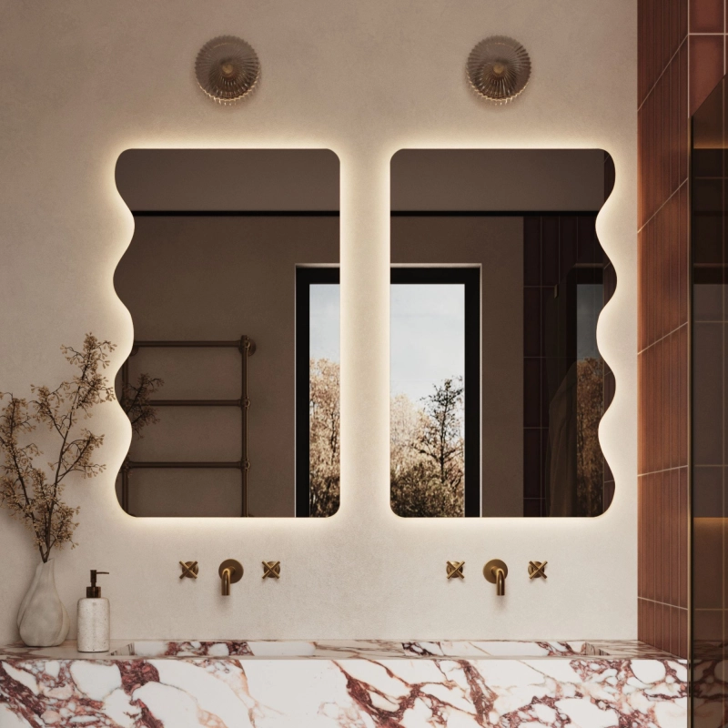 Lustro dekoracyjne oszlifowane z podświetleniem WAVE LED | Różne rozmiary | Różne kolory