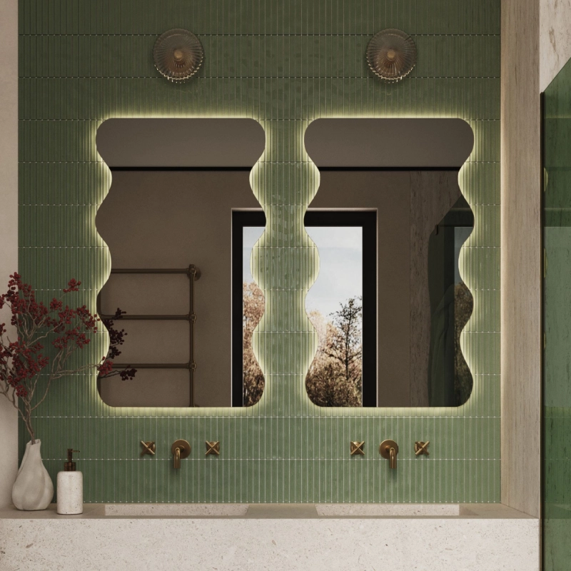 Lustro dekoracyjne oszlifowane z podświetleniem WAVE Duo LED| Różne rozmiary | Różne kolory