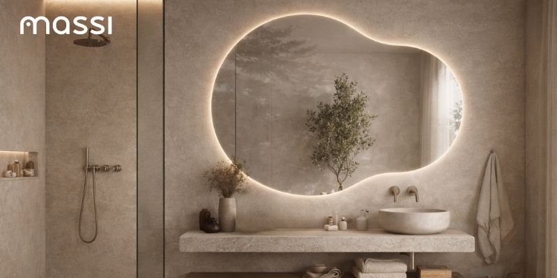 Zintegrowane podświetlenie LED otula taflę delikatną, ciepłą poświatą, która podkreśla płynną linię lustra i buduje atmosferę sprzyjającą relaksowi. To światło idealne zarówno do codziennej pielęgnacji, jak i wieczornego wyciszenia – subtelne, nierażące, tworzące efekt luksusowego spa. Bezramowa konstrukcja oraz precyzyjnie oszlifowane krawędzie podkreślają wysoką jakość wykonania i dekoracyjny charakter kolekcji MOON.
