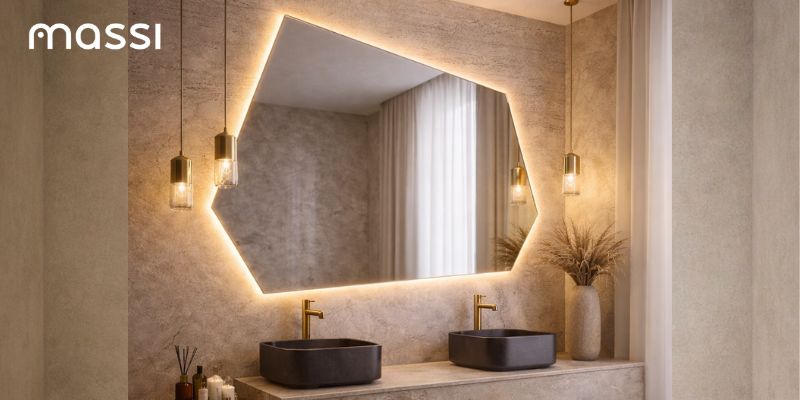 Lustro dekoracyjne o nieregularnym kształcie z podświetleniem FLOW Geometric LED| Różne rozmiary | Różne kolory