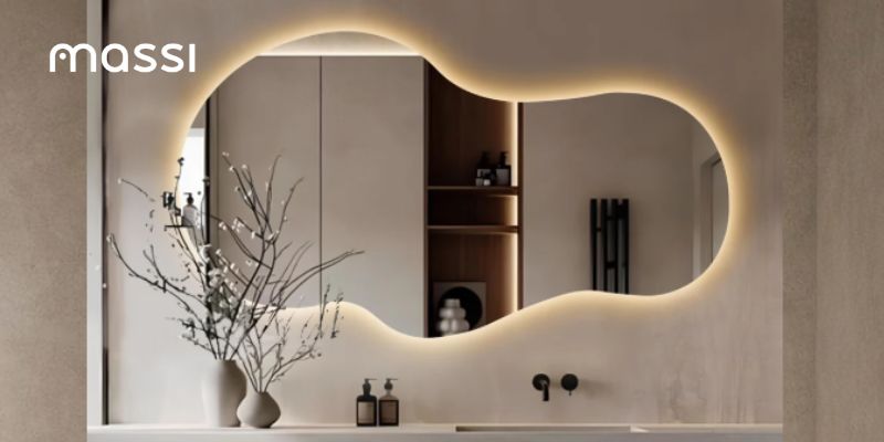 Bezramowa forma sprawia, że FLOW Lagoon LED wygląda lekko i nowocześnie, a jednocześnie doskonale wpisuje się w wnętrza inspirowane naturą, stylem japandi, soft minimal czy nowoczesnym spa. Lustro świetnie sprawdzi się w łazience, salonie, sypialni lub strefie relaksu, stając się nie tylko praktycznym elementem, ale też dekoracją, która przyciąga wzrok.