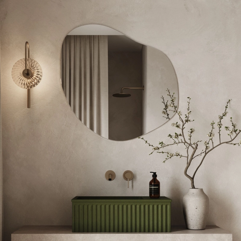 Nasz wyjątkowy model lustra MERINGO to idealne uzupełnienie Twojej łazienki. Nieregularny kształt nadaje pomieszczeniu oryginalnego charakteru, stanowiąc zarazem centralny element aranżacyjny. Bezramowa konstrukcja dodaje mu nowoczesnego uroku, jednocześnie sprawiając, że łatwo dopasuje się do różnorodnych stylów wnętrzarskich. To również doskonałe rozwiązanie dla tych, którzy posiadają dodatkowe źródło światła lub preferują lustra bez podświetlenia, zachowując jednocześnie elegancki minimalizm. Dzięki lustrom MERINGO Twoja łazienka zyska niepowtarzalny i elegancki wygląd, który przyciągnie wzrok każdego, kto wejdzie do tego pomieszczenia.