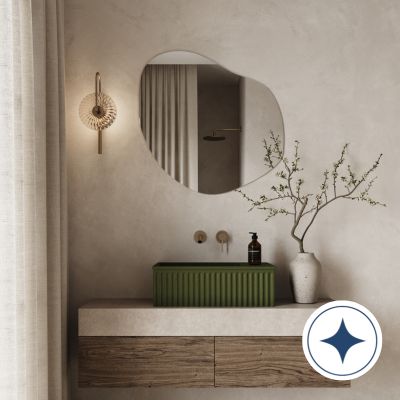 1. Stylowy dodatek -Lustro MERINGO wyróżnia się modną, nieregularną formą, która nada charakteru Twojej łazience. Brak ramy pozwala na łatwe dopasowanie lustra do różnych kolorystyk wnętrz.