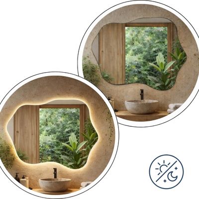 Brak podświetlenia LED pozwala w pełni wyeksponować czystą, płynną formę lustra i jego dekoracyjny charakter. Bezramowa konstrukcja oraz starannie oszlifowane krawędzie sprawiają, że FLOW NATURE prezentuje się elegancko i naturalnie, doskonale komponując się z wnętrzami japandi, boho, spa oraz aranżacjami inspirowanymi naturą.