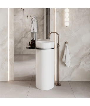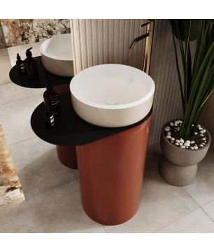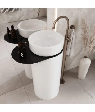 + Umywalka z konglomeratu wolnostojąca okrągła z półką szklaną na ręcznik 85 x 40 cm RONA bez przelewu | Różne kolory półki 3 700,00 zł Dodaj do koszyka