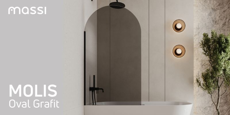 Wybierz grafitowy parawan MOLIS OVAL i stwórz łazienkę pełną stylu i harmonii.