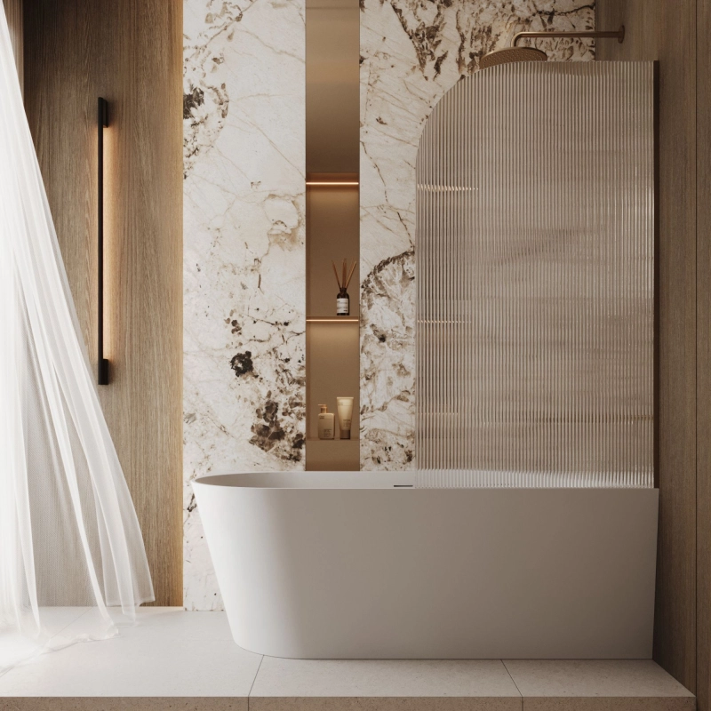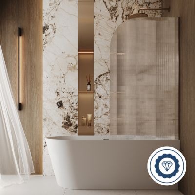 Parawan zapewnia skuteczną ochronę przed zachlapaniem, jednocześnie nie przytłaczając wnętrza – transparentne, ryflowane szkło zachowuje lekkość i dekoracyjny efekt, subtelnie rozprasza światło i nadaje łazience świeżości. Dzięki różnym rozmiarom możesz precyzyjnie dopasować go do swojej wanny i układu pomieszczenia. Jego półokrągła forma nie tylko podnosi estetykę, ale także zapewnia większy komfort korzystania z wanny, ułatwiając wejście i poprawiając ergonomię przestrzeni.