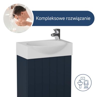 Szafka wisząca CUSCO w kolorze ciemnego granatu 39x22 cm z białą umywalką - Styl i funkcjonalność