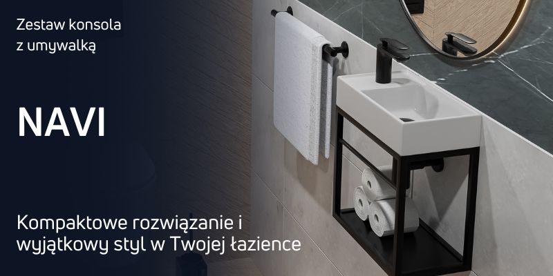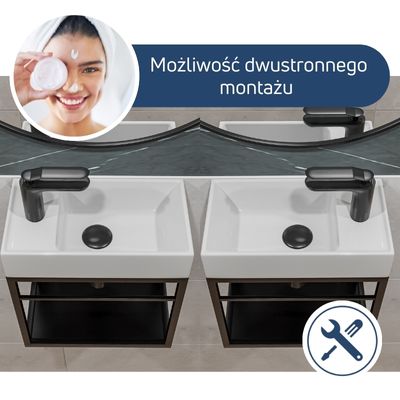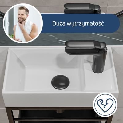 Zestaw umywalka z konglomeratu nablatowa prostokątna biała + czarna konsola 40 x 22 cm NAVI do małej łazienki