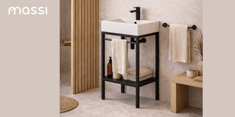 Zestaw umywalka z konglomeratu NAVI 50 x 45 cm + stojąca konsola NAVI Step | Różne kolory | Różne rozmiary