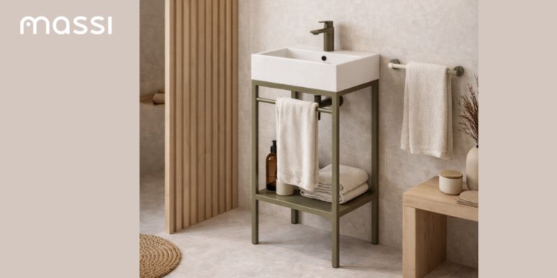 Zestaw umywalka z konglomeratu NAVI 60 x 45 cm + stojąca konsola NAVI Step | Różne kolory | Różne rozmiary