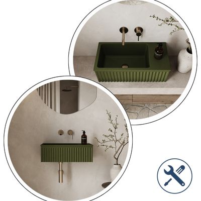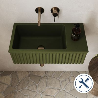 Umywalka betonowa ryflowana nablatowa / wisząca prostokątna 60 x 30 cm WELLE | różne kolory