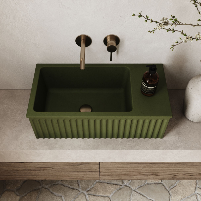Umywalka betonowa ryflowana nablatowa / wisząca prostokątna 60 x 30 cm WELLE oliwkowa | różne kolory