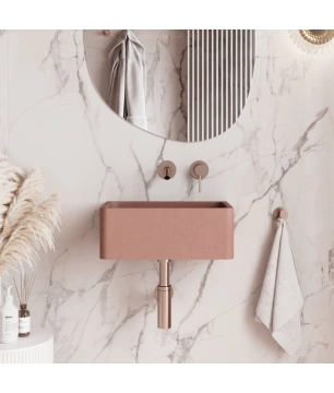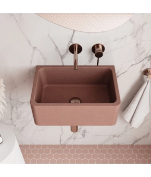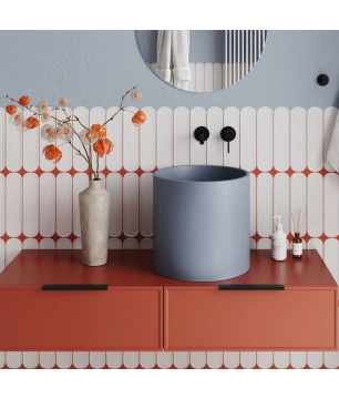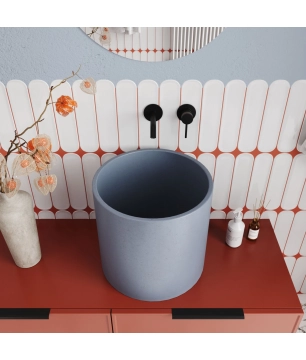 Umywalka betonowa wisząca / nablatowa półokrągła z półką bez otworu na baterię 65 x 30 cm LARMO | różne kolory