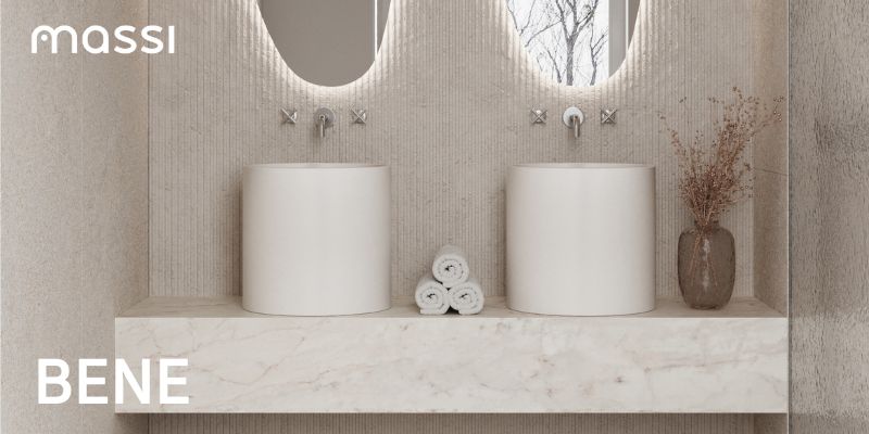 Umywalka betonowa nablatowa okrągła bez otworu na baterię 41 x 40 cm BENE | różne kolory
