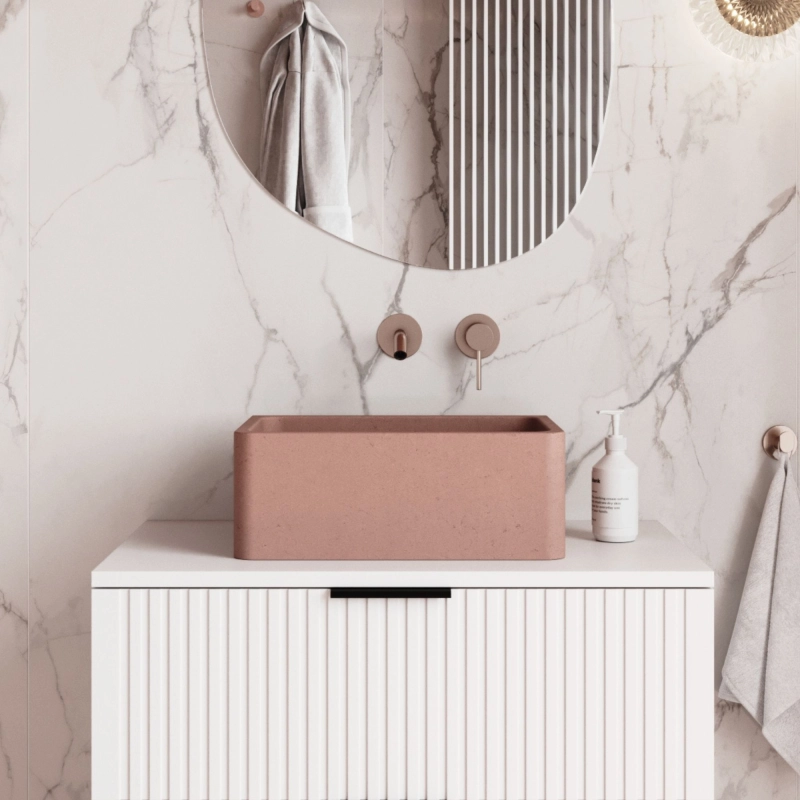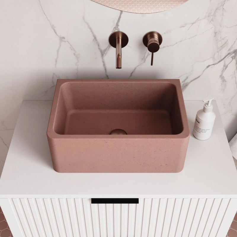 Umywalka betonowa wisząca / nablatowa prostokątna bez otworu na baterię 45 x 30 cm BESENI | różne kolory