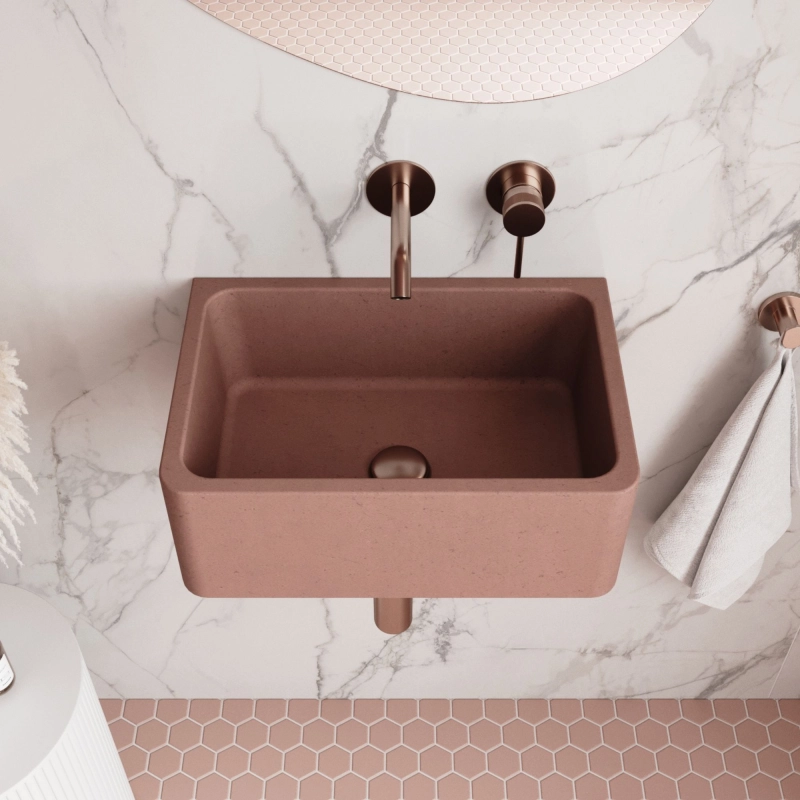 Umywalka betonowa wisząca / nablatowa prostokątna bez otworu na baterię 45 x 30 cm BESENI | różne kolory