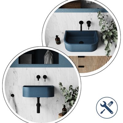 Umywalka betonowa półokrągła wisząca / nablatowa bez otworu na baterię 49 x 30 cm PALANGA | różne kolory