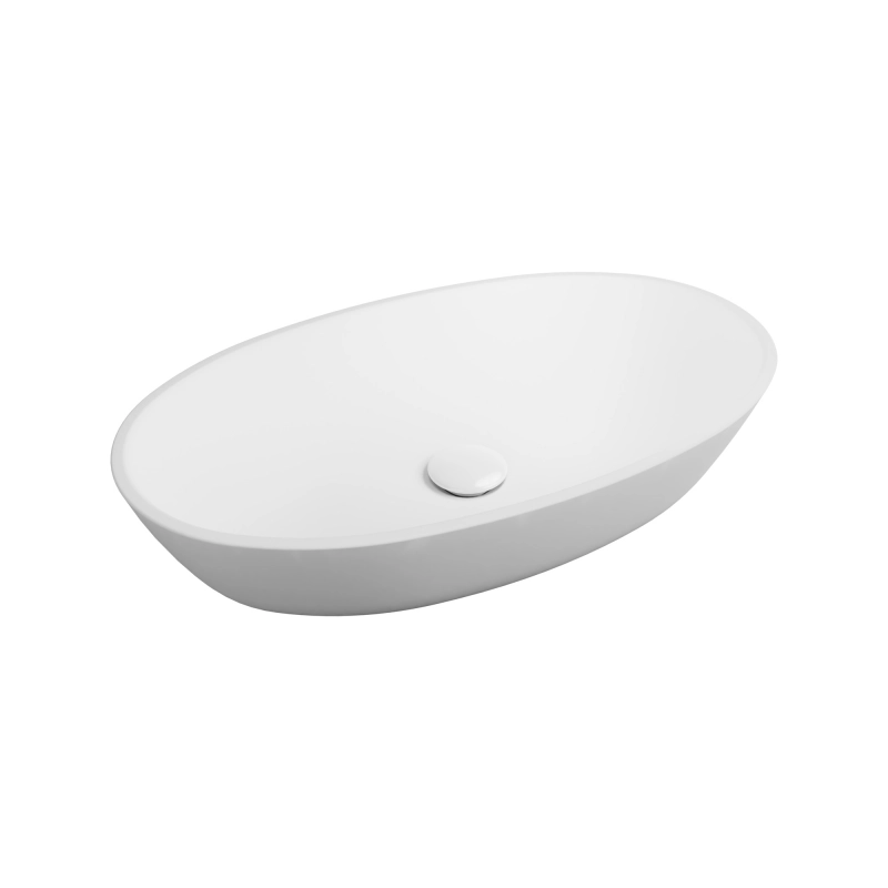 Umywalka nablatowa owalna z konglomeratu biała błyszcząca bez otworu na baterię 60 x 35 cm RONA white Glow
