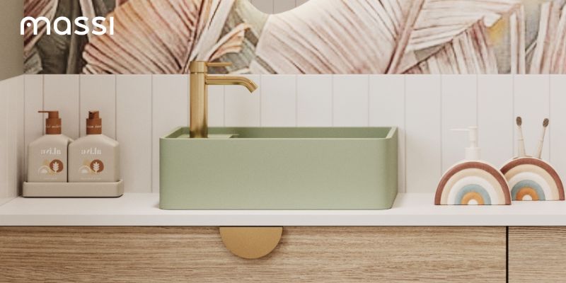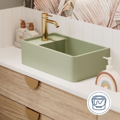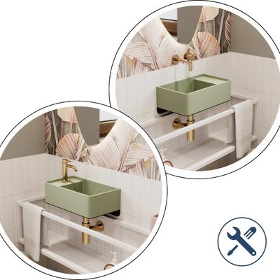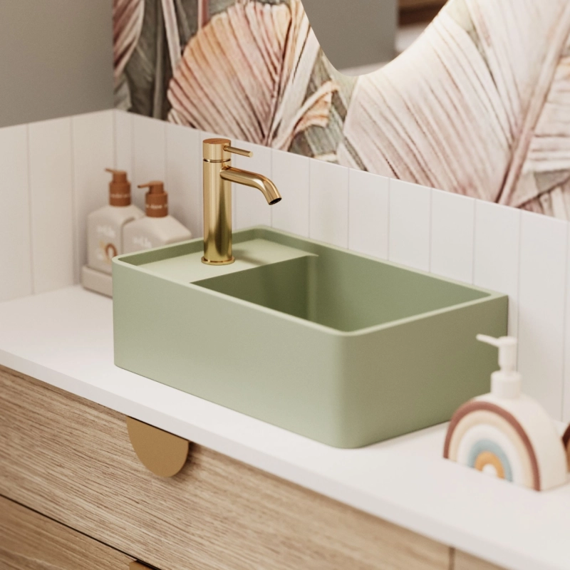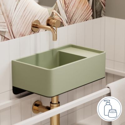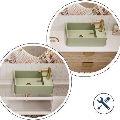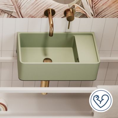 Umywalka z kamienia syntetycznego nablatowa / wisząca prostokątna zielona 43 cm x 25 cm EVELIA Green